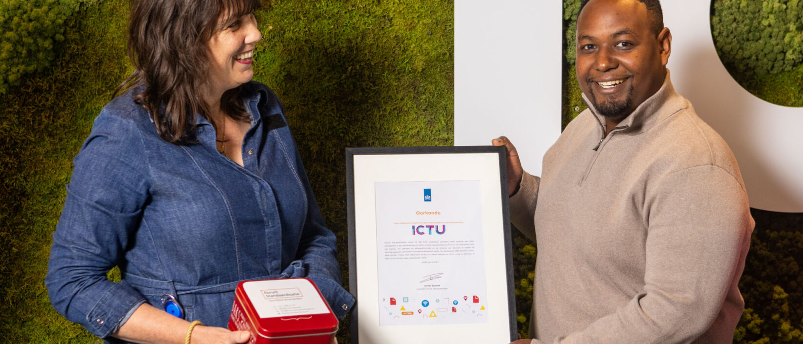 Forum Standaardisatie overhandigde ICTU op 25 september een oorkonde voor deze goede score. Er werd in het onderzoek specifiek gekeken naar een aanbesteding die ICTU in 2025 deed in de categorie informatiebeveiliging. Eric Nieuwland is als informatiebeveiliger bij ICTU betrokken bij aanbestedingen: “Als ICTU ontwikkelen we software en daar laten we vaak een derde partij een kwaliteitscontrole op doen. Voor die externe controles deden we in 2025 een aanbesteding. We stelden daarin als eis dat de partij de standaarden voor informatiebeveiliging gebruikt. Dat zijn breed geaccepteerde, internationale standaarden, waar een organisatie op gecertificeerd kan worden.” Hij vindt het “een leuke verrassing” dat ICTU hiervoor een oorkonde krijgt. Maar hij is ook bescheiden: “Voor ons is het vanzelfsprekend om naar deze standaarden te vragen. We krijgen een oorkonde voor iets dat wij zelf volstrekt logisch vinden om te doen.”